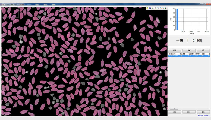 4、★自動(dòng)識(shí)別分割大米,無(wú)需做特殊的樣品排列,單次檢測(cè)樣品量:1-2000粒(單次最大檢測(cè)量18g),測(cè)定時(shí)間≤30秒。具有鼠標(biāo)交互修正改判特性,以便獲得100%正確的結(jié)果。