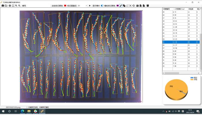 5、★自動(dòng)數(shù)粒誤差<±2.0%,極少量添加、刪除修正,可達(dá)100%正確。各級(jí)枝梗長的自動(dòng)測(cè)量誤差<±1.5mm,可鼠標(biāo)編輯修正以接近100%正確。