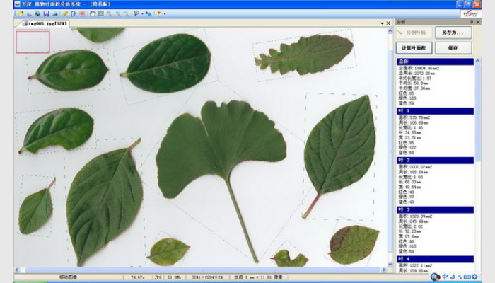 3、可分析小至1mm ^2的葉片,分析誤差<0.5%、測量中的分析時(shí)間<2秒,自動獨(dú)立標(biāo)記各葉片并可保存圖,分析結(jié)果可輸出至Excel表。