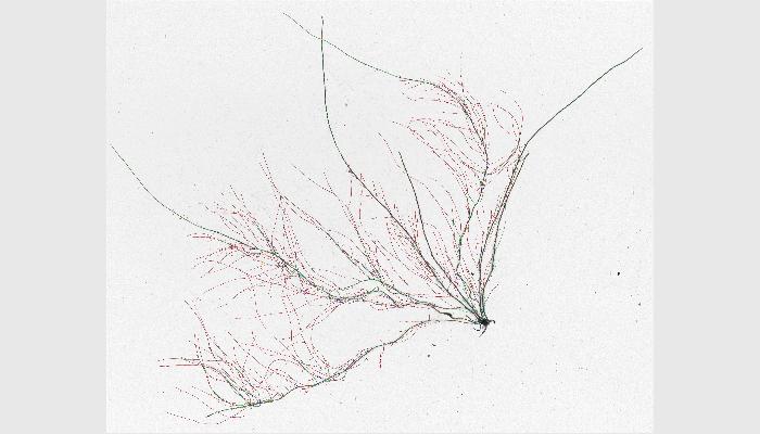 (4)能進行根系的拓撲分析,自動確定根的連接數、關系角等,還能單獨地自動分析主根或任意一支側根的長度和分叉數等,可單獨顯示標記根系的任意直徑段相應各參數(分檔數、檔直徑范圍任意可改,可不等間距地自定義),并能進行根的分叉裁剪、合并、連接等修正,修正操作能回退,以快速獲得100%正確的結果。