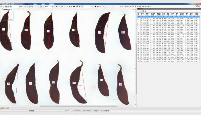 (9)能自動測量油菜、大豆等果莢的果柄、果身、果喙部分粗細、長、弧長、玄高等參數。