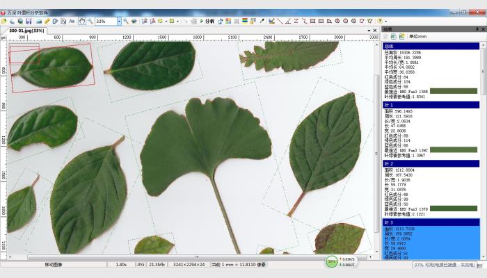 (11)能測各類針葉的葉面積、長度、粗細。
