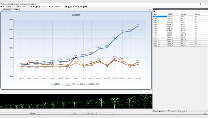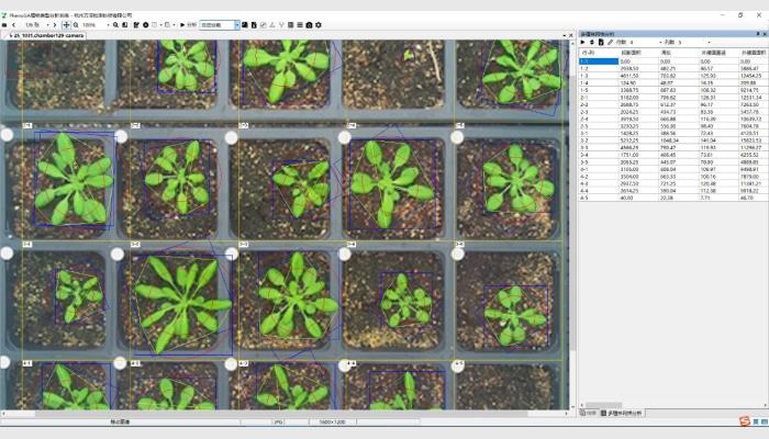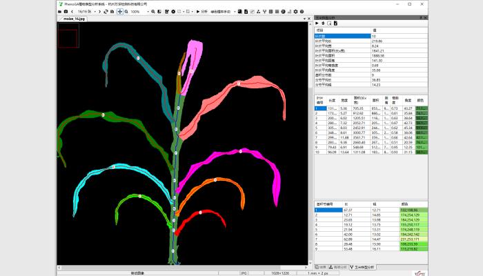 (8)其它:不同生長時期自動批量化處理分析,多植株網格分析,直線、角度等幾何測量,各測量結果可編輯修正。
